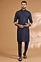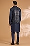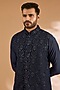 Featuring a blue bundi jacket in georgette base with sequins work. It is paired with a cotton silk kurta and pants. Style it with embroidered loafers for a festive occasion, wedding, sangeet or engagement ceremony, exuding charm and elegance.