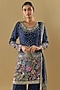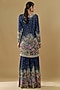 Featuring a blue kurta in georgette base with sequins and multi-colored thread jaal embroidery. It is paired with embroidered gharara pants and a net dupatta. Accentuate it with bold jhumkas and embellished juttis, perfect for festive gatherings, weddings and evening celebrations.