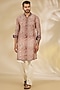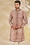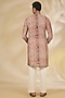 Featuring a blush pink kurta in georgette base with print and beads embroidery. It is paired with cotton silk pants. Style it with a pair of kolhapuri sandals for a festive occasion, wedding or engagement ceremony.