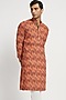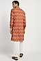 Featuring a coral kurta in crepe base with mughal jaal print. It is paired with contrasting churidar pants in cotton silk base.