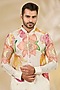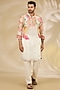 Featuring a cream kurta in georgette base with print, sequins and zari embroidery. It is paired with cotton silk pants. Style it with a pair of kolhapuri sandals for a festive occasion, wedding or engagement ceremony.