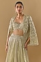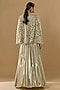 Featuring a gold jacket in shimmer georgette base with 3D floral cutwork, sequins and beads embroidery. It is paired with a skirt. Accentuate it with statement earrings and strappy heels, perfect for receptions, cocktail nights and festive celebrations.