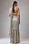 Grey Georgette Sequins Embroidered Pre-Stitched Skirt Saree Set