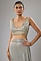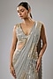 Featuring a grey pre-stitched skirt saree in georgette base with sequins and beads embroidery. It is paired with a net blouse. Accentuate it with sleek heels and minimal jewellery, perfect for cocktail parties, evening events and receptions.