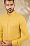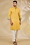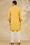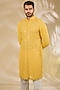 Featuring a haldi yellow kurta in georgette base with print, thread and mirror embroidery. It is paired with cotton silk pants. Style it with a pair of kolhapuri sandals for a festive occasion, haldi, wedding or engagement ceremony.