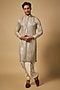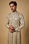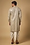 Featuring an ivory kurta in georgette and cotton silk base. It is paired with dhoti. Style it with mojaris for a festive occasion, wedding, engagement or sangeet ceremony.