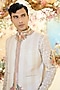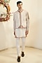 Featuring an ivory bundi jacket in georgette base with floral, pearl, cutdana and sequins work. Style it with a kurta set and mojaris for a wedding, sangeet or engagement ceremony.