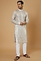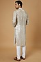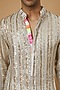 Featuring an ivory kurta in georgette base with gold sequins embroidery. It is paired with matching cotton silk churidar pants.