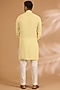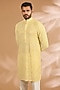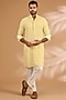 Featuring a lemon kurta kurta in georgette base with beads, thread and sequin embroidery. It is paired with cotton silk white pants. Perfect for a festive occasion, haldi, wedding or engagement ceremony, exuding charm and elegance.