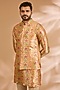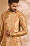 Featuring a multi-colored bundi jacket in banarasi silk base with zari and print detailing. Style it with a kurta set and kolhapuri sandals for a festive occasion, wedding or engagement ceremony, exuding charm and elegance.