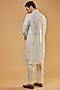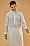 Featuring an off-white kurta in georgette base with sequins jaal embroidery. Perfect attire for any festive occasion, exuding traditional charm and timeless elegance.