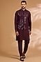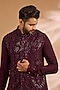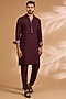 Featuring an ox-blood bundi jacket in georgette base with sequins work. It is paired with a cotton silk kurta and pants. Style it with embroidered loafers for a festive occasion, wedding, sangeet or engagement ceremony, exuding charm and elegance.