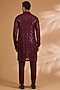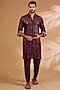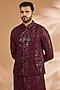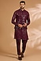 Featuring an ox-blood bundi jacket in georgette base with sequins work. It is paired with a kurta and cotton silk pants. Style it with embroidered loafers for a festive occasion, wedding, sangeet or engagement ceremony, exuding charm and elegance.