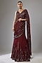 Ox Blood Red Net & Georgette Sequins Embroidered Draped Lehenga Saree Set