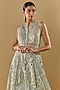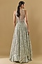 Featuring a pale aqua jacket in net base with 3D floral cutwork, sequins and beads embroidery. It is paired with a shimmer georgette skirt. Accentuate it with statement earrings and strappy heels, perfect for receptions, cocktail nights and festive celebrations.