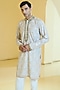 Featuring a sage green kurta in silk base with stone, pearl and resham work. It is paired with cotton silk pants. Style it with kolhapuri sandals for a festive occasion, cultural event, wedding or engagement ceremony.
