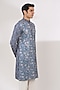 Featuring a teal blue kurta in sheeting and georgette base with sequins embroidery. It is paired with white cotton silk pants. Perfect wear for any festive occasion or wedding ceremony.