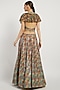 Featuring a multi colored trellis lehenga in georgette base with jaal detailing. It is paired with a matching blouse having frills and a dupatta.