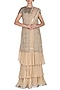 Nude Georgette Hand Embroidered Three-Layered Ruffled Jacket Saree Set