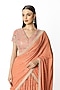 Featuring a peach 12 kali lehenga in georgette base with sequins, cutdana, thread, mirror and pearl embroidery. It is paired with a blouse and a dupatta. Accentuate it with statement jewellery and heels for the perfect addition to you bridal trousseau.