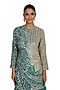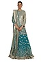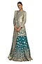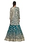 Featuring a peacock blue lehenga skirt in net base with animal print and eight kalis. It is paired with a matching kurta having hand embroidery and dupatta in chiffon base.