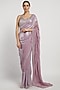 Featuring a purple saree in chiffon base with sequins hand embroidery and jaal work. It is paired with a matching net blouse.