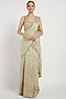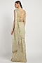 Featuring a sage green saree in georgette base. It is paired with a net blouse. Accentuate it with statement jewellery and heels for cocktail parties or mehendi ceremonies.