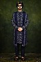 Navy Raw Silk Embroidered Sherwani Set