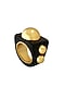 Featuring a 18kt gold plated bubble black ring, set in brass. Perfect for elevating cocktail evenings or adding sparkle to celebratory dinners.