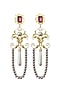Featuring a pair of 18kt gold plated dangler earrings studded with emerald drops, crystal and pearls, set in brass. Perfect for wedding celebrations, festive soirees or cultural gatherings adding a regal charm to every look.
