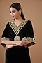 Featuring a black kaftan style kurta in velvet base with zardosi hand embroidery. It is paired with silk velvet salwar pants. Accentuate it with dangler earrings and heels for a festive occasion or pooja ceremony.