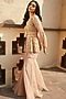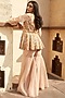 Featuring a peach peplum in silk organza and tulle base with embroidery. It is paired with a matching gharara pants.