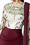 Featuring a burgundy draped saree in pure crepe and silk jersey base. It is paired with a crop top having a beaded neckline and print. Accentuate it with statement jewellery and heels for a wedding, sangeet or engagement ceremonies.