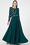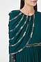 Featuring a deep teal belted gown in georgette base with a drape and beads embroidery.