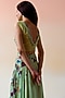 Featuring a mint green top in silk satin base with print. It is paired with a matching skirt.