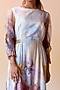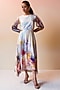 Featuring an off-white ruched dress in silk satin base with organza sleeves and print.