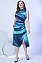 Featuring a blue dress in viscose satin base with marble print and a high neck.
