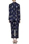 Featuring an indigo hand block printed jacket in chanderi with front pockets.