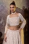 Featuring a peach lehenga in silk base with pearl, poth and dabka embroidery. It is paired with an embroidered choli and a dupatta. Accentuate it with statement earrings and heels for a festive occasion or wedding ceremony.