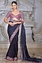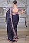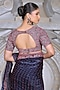 Featuring a blue saree in organza and fendi silk base. It is paired with a blouse. Accentuate it with statement earrings, a clutch and block heels for weddings or sangeet ceremonies.