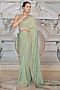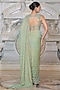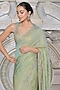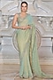 Featuring a green saree in organza and fendi silk base. It is paired with a blouse. Accentuate it with statement earrings, a clutch and block heels for weddings or mehendi ceremonies.