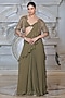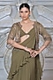 Featuring an olive green saree in organza and fendi silk base. It is paired with a blouse. Accentuate it with statement earrings, a clutch and block heels for weddings or mehendi ceremonies.