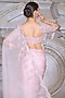 Featuring a pink saree in organza and fendi silk base. It is paired with a blouse. Accentuate it with statement earrings, a clutch and block heels for weddings or engagement ceremonies.