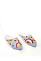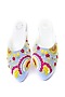 Featuring a pair of blue mules in denim base with thread hand embroidery. It has double cushion padding and a taiwan sole.
