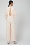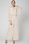 Featuring a beige jumpsuit in georgette base with hand embroidered motifs. It has a round neck, deep cut back and full sleeves.