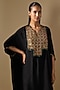 Featuring a black kaftan kurta in crepe base with embroidery. It is paired with striped pants. Accentuate it with statement gold earrings, a sleek clutch and comfortable juttis or heels for an effortless look, ideal for festive gatherings, intimate celebrations, or elegant daytime events.