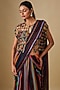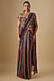 Black Georgette & Crepe Hand Embroidered Striped Pre-Stitched Saree Set