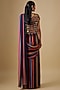 Featuring a black striped pre-stitched saree in georgette and crepe base with hand embroidery. It is paired with a mesh jacket and a bralette. Accentuate it with dangler earrings and heels for a festive occasion, cocktail party or sangeet ceremony.