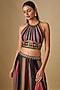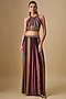 Featuring a black striped top in georgette and crepe base with hand embroidery. It is paired with lehenga pants. Accentuate it with dangler earrings and heels for a cocktail party or sangeet ceremony.