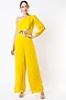 Featuring a canary yellow jumpsuit in georgette base with hand embroidery.